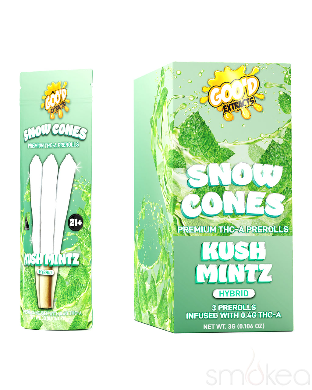 {"id":7550413537331,"title":"Goo'd THCA Snow Cones Pre-Rolls - Kush Mintz","handle":"good-thca-snow-cones-pre-rolls-kush-mintz","description":"\u003cp\u003eFreshen up your sesh with the \u003cstrong\u003eGoo’d THCA Snow Cones Pre-Rolls – Kush Mintz (Hybrid)\u003c\/strong\u003e. Each pack includes three perfectly rolled 1-gram pre-rolls, infused with 0.4 grams of THCA diamonds for a powerful, flavorful experience. The Kush Mintz strain delivers a balanced high with cool, minty undertones and hints of earthy sweetness—ideal for moments when you want to feel relaxed yet uplifted.\u003c\/p\u003e\n\u003cp\u003eCrafted with premium flower and concentrated THCA extract, these Snow Cones are designed to impress. THCA converts into Delta-9 THC when heated, unlocking its full potency with each puff. Whether you're hanging with friends or taking a solo moment to unwind, these hybrid pre-rolls offer a smooth, flavorful burn and effects that toe the line between mellow and motivated. It’s the perfect blend for day or night enjoyment.\u003c\/p\u003e\n\u003ch3\u003eProduct Highlights:\u003c\/h3\u003e\n\u003cul\u003e\n\u003cli\u003e3 Pre-Rolls Per Pack With 1 Gram Each\u003c\/li\u003e\n\u003cli\u003eInfused With 0.4 Grams of Potent THCA Diamonds\u003c\/li\u003e\n\u003cli\u003eKush Mintz Hybrid Strain With Cool Mint and Earthy Flavor\u003c\/li\u003e\n\u003cli\u003eBalanced Effects Ideal for Any Time of Day\u003c\/li\u003e\n\u003cli\u003eTHCA Converts to THC When Heated for Full Potency\u003c\/li\u003e\n\u003cli\u003ePremium, Ready-to-Smoke Infused Pre-Rolls\u003c\/li\u003e\n\u003cli\u003eLab Tested for Quality and Potency\u003c\/li\u003e\n\u003cli\u003eManufactured in the USA\u003c\/li\u003e\n\u003c\/ul\u003e\n\u003ch3\u003eProduct Specifications:\u003c\/h3\u003e\n\u003ctable\u003e\n\u003ctbody\u003e\n\u003ctr\u003e\n\u003ctd\u003eBrand\u003c\/td\u003e\n\u003ctd\u003e\u003ca title=\"Goo'd Premium THCA\" href=\"\/collections\/good\" target=\"_blank\"\u003eGoo'd\u003c\/a\u003e\u003c\/td\u003e\n\u003c\/tr\u003e\n\u003ctr\u003e\n\u003ctd\u003eCannabinoid\u003c\/td\u003e\n\u003ctd\u003e\u003ca rel=\"noopener\" title=\"THCA Products at SMOKEA\" href=\"\/collections\/thca\" target=\"_blank\"\u003eTHCA\u003c\/a\u003e\u003c\/td\u003e\n\u003c\/tr\u003e\n\u003ctr\u003e\n\u003ctd\u003eCapacity\u003c\/td\u003e\n\u003ctd\u003e1g x 3\u003c\/td\u003e\n\u003c\/tr\u003e\n\u003ctr\u003e\n\u003ctd\u003ePre-Rolls\/Pack\u003c\/td\u003e\n\u003ctd\u003e3\u003c\/td\u003e\n\u003c\/tr\u003e\n\u003ctr\u003e\n\u003ctd\u003ePacks\/Display\u003c\/td\u003e\n\u003ctd\u003e5\u003c\/td\u003e\n\u003c\/tr\u003e\n\u003ctr\u003e\n\u003ctd\u003eStrain\u003c\/td\u003e\n\u003ctd\u003e\u003ca rel=\"noopener\" title=\"Hybrid Strains at SMOKEA\" href=\"\/collections\/hybrids\" target=\"_blank\"\u003eHybrid\u003c\/a\u003e\u003c\/td\u003e\n\u003c\/tr\u003e\n\u003c\/tbody\u003e\n\u003c\/table\u003e\n\u003cp\u003e\u003ca href=\"https:\/\/cdn.shopify.com\/s\/files\/1\/1752\/6725\/files\/2402EXL0389.1894-Work-Hard-Doc-Snow-Cones-Kush-Mintz.pdf?v=1742937272\" style=\"margin-top: 15px; display: block; font-weight: bold; color: black;\" class=\"btn_c\" target=\"_blank\"\u003eLab Results\u003c\/a\u003e\u003c\/p\u003e\n\u003cp\u003ePlease read our full Hemp Disclaimer by \u003ca href=\"\/pages\/hemp-disclaimer\" title=\"SMOKEA® Hemp Disclaimer\" target=\"_blank\"\u003eclicking here\u003c\/a\u003e.\u003c\/p\u003e\n\u003cp\u003eNOTE: This product cannot ship to certain states and\/or regions. To view a full list of shipping restrictions, visit our Shipping Policy by \u003ca href=\"\/shipping\" title=\"SMOKEA® Shipping Policy\" target=\"_blank\"\u003eclicking here\u003c\/a\u003e.\u003c\/p\u003e","published_at":"2025-03-25T16:03:50-05:00","created_at":"2025-03-25T16:52:55-05:00","vendor":"Goo'd","type":"Pre-Rolls","tags":["Brand_Goo'd","Cannabinoid_THCA","Display","Features_Made in USA","Final Sale","New","Non-Dropship","Price_$10-$25","Product Type_Pre-Rolls","Strain_Hybrid","THC \u0026 CBD","THC \u0026 More","Vendor_AFG","w50","wholesale"],"price":1300,"price_min":1300,"price_max":1300,"available":true,"price_varies":false,"compare_at_price":null,"compare_at_price_min":0,"compare_at_price_max":0,"compare_at_price_varies":false,"variants":[{"id":43237198069811,"title":"Default Title","option1":"Default Title","option2":null,"option3":null,"sku":"SP791OGK","requires_shipping":true,"taxable":true,"featured_image":null,"available":true,"name":"Goo'd THCA Snow Cones Pre-Rolls - Kush Mintz","public_title":null,"options":["Default Title"],"price":1300,"weight":18,"compare_at_price":null,"inventory_management":"shopify","barcode":"850051606474","requires_selling_plan":false,"selling_plan_allocations":[],"quantity_rule":{"min":1,"max":null,"increment":1}}],"images":["\/\/smokeawholesale.com\/cdn\/shop\/files\/snowconeskushmintzbox.jpg?v=1756916691","\/\/smokeawholesale.com\/cdn\/shop\/files\/snowmintz.jpg?v=1756916691"],"featured_image":"\/\/smokeawholesale.com\/cdn\/shop\/files\/snowconeskushmintzbox.jpg?v=1756916691","options":["Title"],"media":[{"alt":null,"id":26878726373427,"position":1,"preview_image":{"aspect_ratio":0.8,"height":1280,"width":1024,"src":"\/\/smokeawholesale.com\/cdn\/shop\/files\/snowconeskushmintzbox.jpg?v=1756916691"},"aspect_ratio":0.8,"height":1280,"media_type":"image","src":"\/\/smokeawholesale.com\/cdn\/shop\/files\/snowconeskushmintzbox.jpg?v=1756916691","width":1024},{"alt":null,"id":25142626418739,"position":2,"preview_image":{"aspect_ratio":0.8,"height":1280,"width":1024,"src":"\/\/smokeawholesale.com\/cdn\/shop\/files\/snowmintz.jpg?v=1756916691"},"aspect_ratio":0.8,"height":1280,"media_type":"image","src":"\/\/smokeawholesale.com\/cdn\/shop\/files\/snowmintz.jpg?v=1756916691","width":1024}],"requires_selling_plan":false,"selling_plan_groups":[],"content":"\u003cp\u003eFreshen up your sesh with the \u003cstrong\u003eGoo’d THCA Snow Cones Pre-Rolls – Kush Mintz (Hybrid)\u003c\/strong\u003e. Each pack includes three perfectl