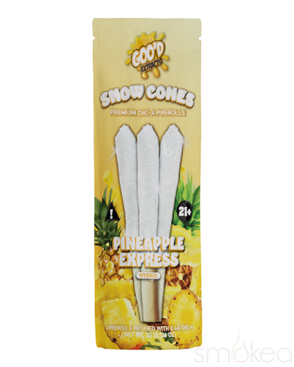 {"id":7664412262451,"title":"Goo'd THCA Snow Cones Pre-Rolls - Pineapple Express","handle":"good-thca-snow-cones-pre-rolls-pineapple-express","description":"\u003cp\u003eExperience a flavorful rush with \u003cstrong\u003eGoo’d THCA Snow Cones Pre-Rolls\u003c\/strong\u003e in the iconic \u003cstrong\u003ePineapple Express hybrid strain\u003c\/strong\u003e. These expertly crafted pre-rolls are infused inside with high-potency THC-A diamonds and dusted on the outside for maximum impact. Each roll delivers a smooth, powerful hit that blends tropical flavor with an energetic, mood-lifting effect that Pineapple Express is known for.\u003c\/p\u003e\n\n\u003cp\u003eInside each pack, you'll find \u003cstrong\u003ethree 1g pre-rolls\u003c\/strong\u003e made from premium USA-grown hemp and 2018 Farm Bill compliant. The hybrid strain offers a sweet and fruity terpene profile that pairs beautifully with the potent diamond infusion, creating a well-rounded experience that’s ideal for daytime sessions, creative boosts, or social vibes.\u003c\/p\u003e\n\n\u003cp\u003eGoo’d Extracts has redefined pre-rolls with their Snow Cones line—combining quality flower, rich terpenes, and diamond-coated potency for an unforgettable smoke. Whether you're chasing flavor, effects, or both, these Pineapple Express pre-rolls offer a next-level hybrid experience in every puff.\u003c\/p\u003e\n\n\u003ch3\u003eProduct Highlights:\u003c\/h3\u003e\n\u003cul\u003e\n \u003cli\u003eInfused and Dusted with THC-A Diamonds\u003c\/li\u003e\n \u003cli\u003e1 Gram of Premium Hemp Flower Per Pre-Roll\u003c\/li\u003e\n \u003cli\u003eIncludes 3 Pre-Rolls Per Pack (3g Total)\u003c\/li\u003e\n \u003cli\u003eStrain: Pineapple Express – Energizing Hybrid\u003c\/li\u003e\n \u003cli\u003eSweet, Fruity Terpene Profile with Uplifting Effects\u003c\/li\u003e\n\u003cli\u003eLab Tested for Quality and Potency\u003c\/li\u003e\n\u003cli\u003eManufactured in the USA\u003c\/li\u003e\n\u003c\/ul\u003e\n\u003ch3\u003eProduct Specifications:\u003c\/h3\u003e\n\u003ctable\u003e\n\u003ctbody\u003e\n\u003ctr\u003e\n\u003ctd\u003eBrand\u003c\/td\u003e\n\u003ctd\u003e\u003ca title=\"Goo'd Premium THCA\" href=\"\/collections\/good\" target=\"_blank\"\u003eGoo'd\u003c\/a\u003e\u003c\/td\u003e\n\u003c\/tr\u003e\n\u003ctr\u003e\n\u003ctd\u003eCannabinoid\u003c\/td\u003e\n\u003ctd\u003e\u003ca rel=\"noopener\" title=\"THCA Products at SMOKEA\" href=\"\/collections\/thca\" target=\"_blank\"\u003eTHCA\u003c\/a\u003e\u003c\/td\u003e\n\u003c\/tr\u003e\n\u003ctr\u003e\n\u003ctd\u003eCapacity\u003c\/td\u003e\n\u003ctd\u003e1g x 3\u003c\/td\u003e\n\u003c\/tr\u003e\n\u003ctr\u003e\n\u003ctd\u003ePre-Rolls\/Pack\u003c\/td\u003e\n\u003ctd\u003e3\u003c\/td\u003e\n\u003c\/tr\u003e\n \u003ctr\u003e\n\u003ctd\u003ePacks\/Display\u003c\/td\u003e\n\u003ctd\u003e5\u003c\/td\u003e\n\u003c\/tr\u003e\n\u003ctr\u003e\n\u003ctd\u003eStrain\u003c\/td\u003e\n\u003ctd\u003e\u003ca rel=\"noopener\" title=\"Hybrid Strains at SMOKEA\" href=\"\/collections\/hybrids\" target=\"_blank\"\u003eHybrid\u003c\/a\u003e\u003c\/td\u003e\n\u003c\/tr\u003e\n\u003c\/tbody\u003e\n\u003c\/table\u003e\n\u003cp\u003e\u003ca href=\"https:\/\/cdn.shopify.com\/s\/files\/1\/1752\/6725\/files\/2402EXL0389.1892_-_Work_Hard_Doc_-_Snow_Cones_-_Pineapple_Express.pdf?v=1756494851\" style=\"margin-top: 15px; display: block; font-weight: bold; color: black;\" class=\"btn_c\" target=\"_blank\"\u003eLab Results\u003c\/a\u003e\u003c\/p\u003e\n\u003cp\u003ePlease read our full Hemp Disclaimer by \u003ca href=\"\/pages\/hemp-disclaimer\" title=\"SMOKEA® Hemp Disclaimer\" target=\"_blank\"\u003eclicking here\u003c\/a\u003e.\u003c\/p\u003e\n\u003cp\u003eNOTE: This product cannot ship to certain states and\/or regions. To view a full list of shipping restrictions, visit our Shipping Policy by \u003ca href=\"\/shipping\" title=\"SMOKEA® Shipping Policy\" target=\"_blank\"\u003eclicking here\u003c\/a\u003e.\u003c\/p\u003e","published_at":"2025-09-02T12:38:41-05:00","created_at":"2025-09-02T12:38:37-05:00","vendor":"Goo'd","type":"Pre-Rolls","tags":["Brand_Goo'd","Cannabinoid_THCA","Display","Features_Made in USA","Final Sale","New","Non-Dropship","Price_$10-$25","Product Type_Pre-Rolls","Strain_Hybrid","THC \u0026 CBD","THC \u0026 More","Vendor_AFG","w50","wholesale"],"price":1300,"price_min":1300,"price_max":1300,"available":true,"price_varies":false,"compare_at_price":null,"compare_at_price_min":0,"compare_at_price_max":0,"compare_at_price_varies":false,"variants":[{"id":43607899963443,"title":"Default Title","option1":"Default Title","option2":null,"option3":null,"sku":"SP791PE","requires_shipping":true,"taxable":true,"featured_image":null,"available":true,"name":"Goo'd THCA Snow Cones Pre-Rolls - Pineapple Express","public_title":null,"options":["Default Title"],"price":1300,"weight":18,"compare_at_price":null,"inventory_management":"shopify","barcode":"850051606498","requires_selling_plan":false,"selling_plan_allocations":[],"quantity_rule":{"min":1,"max":null,"increment":1}}],"images":["\/\/smokeawholesale.com\/cdn\/shop\/files\/snowconespineapplebox.jpg?v=1756916563","\/\/smokeawholesale.com\/cdn\/shop\/files\/pineappleexpresssnowcone.jpg?v=1756916563"],"featured_image":"\/\/smokeawholesale.com\/cdn\/shop\/files\/snowconespineapplebox.jpg?v=1756916563","options":["Title"],"media":[{"alt":null,"id":26878719852595,"position":1,"preview_image":{"aspect_ratio":0.8,"height":1280,"width":1024,"src":"\/\/smokeawholesale.com\/cdn\/shop\/files\/snowconespineapplebox.jpg?v=1756916563"},"aspect_ratio":0.8,"height":1280,"media_type":"image","src":"\/\/smokeawholesale.com\/cdn\/shop\/files\/snowconespineapplebox.jpg?v=1756916563","width":1024},{"alt":null,"id":26874558414899,"position":2,"preview_image":{"aspect_ratio":0.8,"height":1280,"width":1024,"src":"\/\/smokeawholesale.com\/cdn\/shop\/files\/pineappleexpresssnowcone.jpg?v=1756916563"},"aspect_ratio":0.8,"height":1280,"media_type":"image","src":"\/\/smokeawholesale.com\/