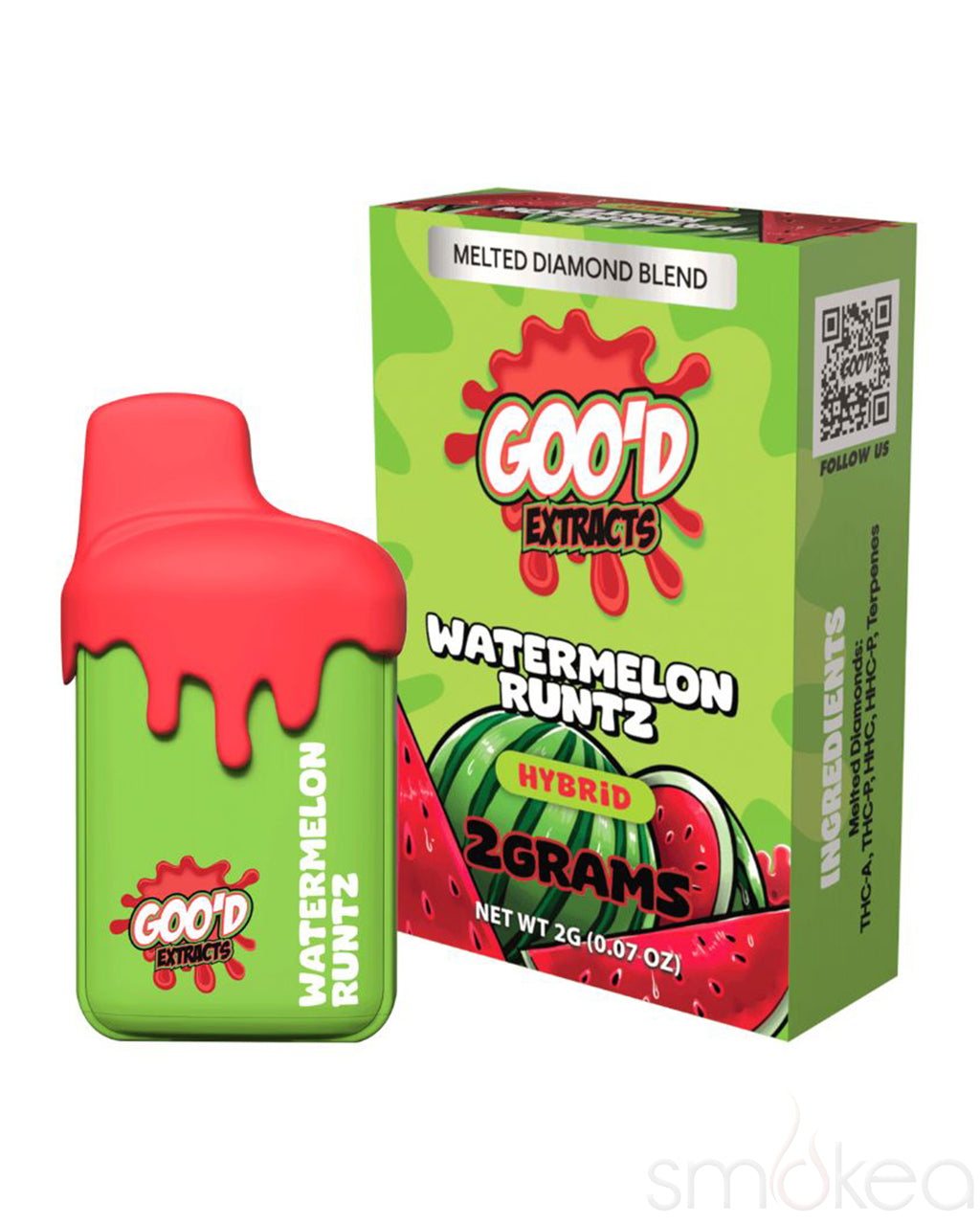 Each device is packed with 2 grams of Goo’d’s premium THCA Melted Diamonds Blend, delivering smooth vapor, rich potency, and a balanced hybrid high. The Watermelon Runtz flavor offers a candy-like sweetness with subtle notes of watermelon, pairing perfectly with the mellow, body-relaxing experience that follows. Ideal for nighttime use or chill sessions when you need to reset and recharge.