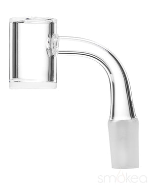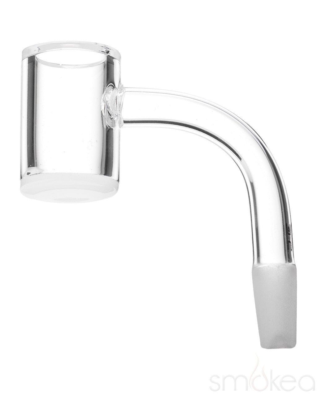 Crafted from high-quality quartz with a standard weld, this banger features a visible seam where the neck meets the bucket—offering solid performance with a classic construction style. The opaque bottom further enhances heat retention, making it ideal for lower-temp dabs and maximizing flavor. Available in 10mm or 14mm joint sizes with a 90° angle, it’s a reliable upgrade to any compatible rig.