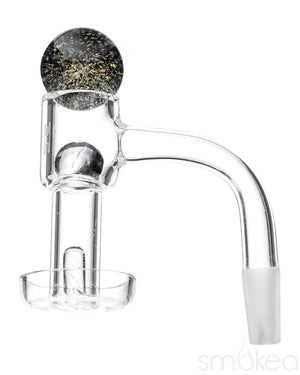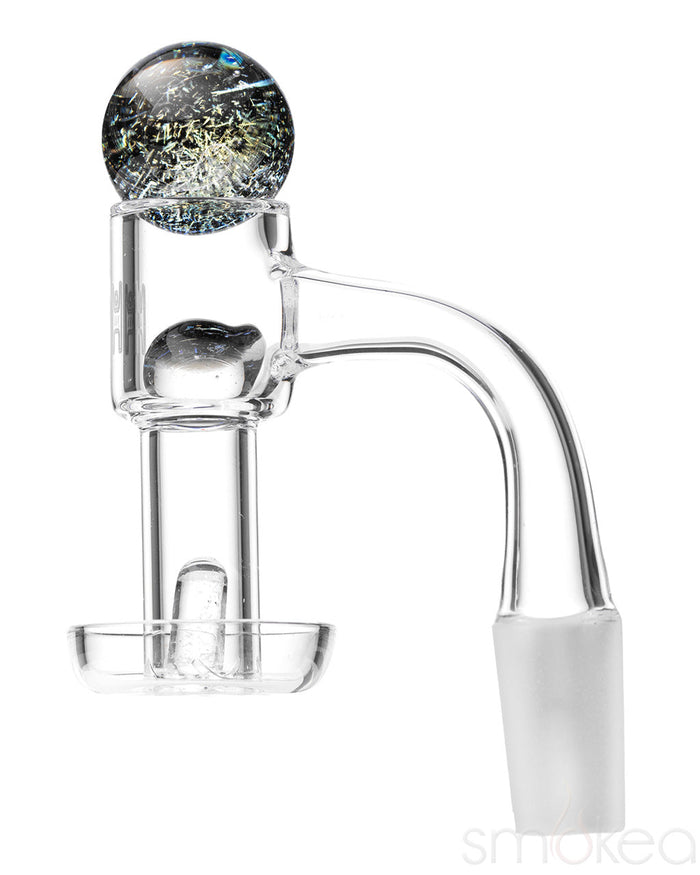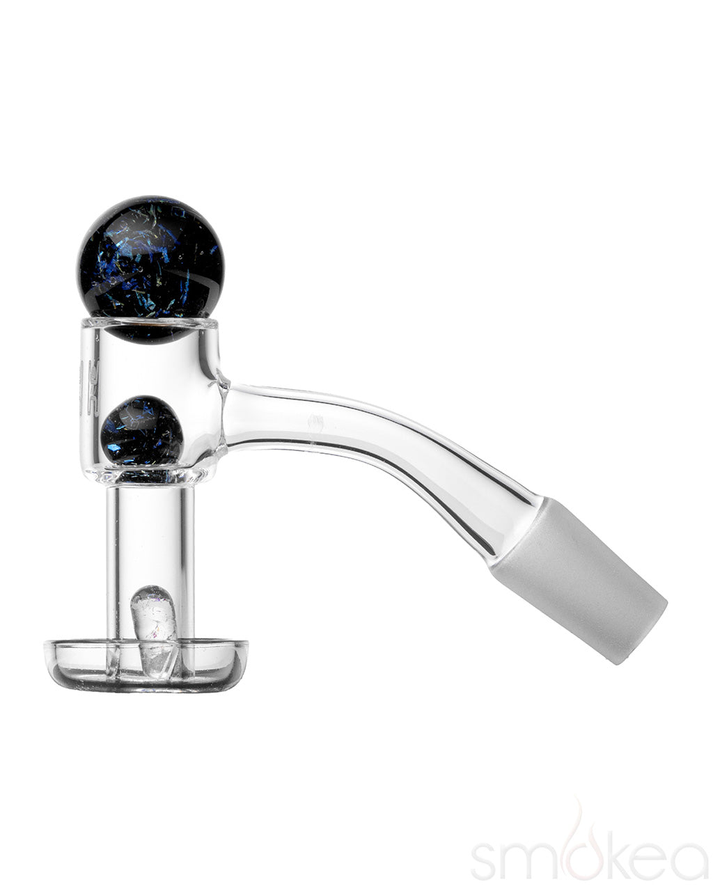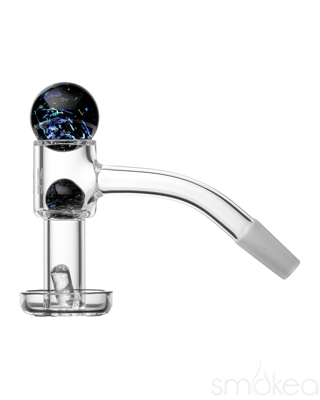 With a full weld construction, the bucket and neck are fused into a single, solid piece of quartz, providing improved durability, better heat distribution, and easier cleaning. This design eliminates crevices around the weld, resulting in a cleaner look and a more hygienic surface. Available in 10mm or 14mm male joints and your choice of 45° or 90° angles, this banger fits most rigs and comes complete with a 21mm marble, 12mm terp pearl, and 6mm terp pill to maximize vapor production and flavor.