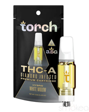 {"id":7672288706611,"title":"Torch 3.5g THCA T5 Diamond Infused Cartridge - White Widow","handle":"torch-3-5g-thca-t5-diamond-infused-cartridge-white-widow","description":"\u003cp\u003eCelebrate five years of elevated excellence with the Torch T5 Anniversary Cartridge in White Widow. This ultra-premium 3.5g cart is infused with potent THC-A diamonds and features Torch's most refined formulation to date. Built into a borosilicate glass tank with a ceramic coil and stainless steel 510 connection, it’s designed for high-performance sessions and unmatched flavor. Note: the larger form factor is not compatible with recessed or hidden-style devices.\u003c\/p\u003e\n\n\u003cp\u003eWhite Widow is a legendary hybrid, cherished for its perfectly balanced effects that energize the mind while gently relaxing the body. Its flavor profile brings earthy pine and sharp citrus up front, rounded out with subtle spice and a clean herbal finish. Whether you’re sparking creativity, getting focused, or just finding your flow, this cart is the ideal all-day companion with timeless appeal and top-tier performance.\u003c\/p\u003e\n\n\u003ch3\u003eProduct Highlights:\u003c\/h3\u003e\n\u003cul\u003e\n \u003cli\u003e3.5g THC-A Diamond Infused Cartridge\u003c\/li\u003e\n \u003cli\u003eHybrid Strain: White Widow\u003c\/li\u003e\n \u003cli\u003eFlavor Profile: Earthy Pine, Citrus, Spice, Herbal\u003c\/li\u003e\n \u003cli\u003eGlass Tank with Ceramic Coil\u003c\/li\u003e\n \u003cli\u003eStainless Steel 510 Thread Connection\u003c\/li\u003e\n \u003cli\u003eNot Compatible with Hidden\/Auto-Draw Devices\u003c\/li\u003e\n \u003cli\u003eLimited T5 Anniversary Edition\u003c\/li\u003e\n\u003cli\u003eLab Tested for Quality and Potency\u003c\/li\u003e\n\u003cli\u003eManufactured in the USA\u003c\/li\u003e\n\u003c\/ul\u003e\n\u003ch3\u003eProduct Specifications:\u003c\/h3\u003e\n\u003ctable\u003e\n\u003ctbody\u003e\n\u003ctr\u003e\n\u003ctd\u003eBrand\u003c\/td\u003e\n\u003ctd\u003e\u003ca rel=\"noopener\" title=\"Torch Cartridges, Vapes \u0026amp; More\" href=\"\/collections\/torch\" target=\"_blank\"\u003eTorch\u003c\/a\u003e\u003c\/td\u003e\n\u003c\/tr\u003e\n\u003ctr\u003e\n\u003ctd\u003eMain Cannabinoid\u003c\/td\u003e\n\u003ctd\u003e\u003ca href=\"\/collections\/thca\" title=\"THCA Products at SMOKEA®\" rel=\"noopener\" target=\"_blank\"\u003eTHCA\u003c\/a\u003e\u003c\/td\u003e\n\u003c\/tr\u003e\n\u003ctr\u003e\n\u003ctd\u003eCapacity\u003c\/td\u003e\n\u003ctd\u003e3.5g\u003c\/td\u003e\n\u003c\/tr\u003e\n\u003ctr\u003e\n\u003ctd\u003eCoil Type\u003c\/td\u003e\n\u003ctd\u003eCeramic\u003c\/td\u003e\n\u003c\/tr\u003e\n\u003ctr\u003e\n\u003ctd\u003eThreading\u003c\/td\u003e\n\u003ctd\u003e510\u003c\/td\u003e\n\u003c\/tr\u003e\n\u003ctr\u003e\n\u003ctd\u003eStrain\u003c\/td\u003e\n\u003ctd\u003e\u003ca rel=\"noopener\" title=\"Hybrid Strains at SMOKEA®\" href=\"\/collections\/hybrids\" target=\"_blank\"\u003eHybrid\u003c\/a\u003e\u003c\/td\u003e\n\u003c\/tr\u003e\n\u003c\/tbody\u003e\n\u003c\/table\u003e\n\u003cp\u003ePlease read our full Hemp Disclaimer by \u003ca href=\"\/pages\/hemp-disclaimer\" title=\"SMOKEA® Hemp Disclaimer\" target=\"_blank\"\u003eclicking here\u003c\/a\u003e.\u003c\/p\u003e\n\u003cp\u003e\u003ca href=\"https:\/\/cdn.shopify.com\/s\/files\/1\/1752\/6725\/files\/Torch_T5_3.5_Premium_Carts_THCA_-_COAs.pdf?v=1758219540\" style=\"margin-top: 15px; display: block; font-weight: bold; color: black;\" class=\"btn_c\" target=\"_blank\"\u003eLab Results\u003c\/a\u003e\u003c\/p\u003e\n\u003cp\u003eNOTE: This product cannot ship to certain states and\/or regions. To view a full list of shipping restrictions, visit our Shipping Policy by \u003ca href=\"\/shipping\" title=\"SMOKEA® Shipping Policy\" target=\"_blank\"\u003eclicking here\u003c\/a\u003e.\u003c\/p\u003e","published_at":"2025-09-22T14:23:21-05:00","created_at":"2025-09-18T13:28:49-05:00","vendor":"Torch","type":"Cartridges","tags":["Brand_Torch","Cannabinoid_THCA","Features_Made in USA","Final Sale","New","Non-Dropship","Price_$25-$50","Product Type_Cartridges","Strain_Hybrid","THC \u0026 CBD","THC \u0026 More","Vendor_Torch Enterprises"],"price":1350,"price_min":1350,"price_max":1350,"available":true,"price_varies":false,"compare_at_price":null,"compare_at_price_min":0,"compare_at_price_max":0,"compare_at_price_varies":false,"variants":[{"id":43632171319347,"title":"Default Title","option1":"Default Title","option2":null,"option3":null,"sku":"TR-T5CWW","requires_shipping":true,"taxable":true,"featured_image":null,"available":true,"name":"Torch 3.5g THCA T5 Diamond Infused Cartridge - White Widow","public_title":null,"options":["Default Title"],"price":1350,"weight":21,"compare_at_price":null,"inventory_management":"shopify","barcode":"810168277189","requires_selling_plan":false,"selling_plan_allocations":[],"quantity_rule":{"min":1,"max":null,"increment":1}}],"images":["\/\/smokeawholesale.com\/cdn\/shop\/files\/35gwhitewidowhybrid.jpg?v=1758220177"],"featured_image":"\/\/smokeawholesale.com\/cdn\/shop\/files\/35gwhitewidowhybrid.jpg?v=1758220177","options":["Title"],"media":[{"alt":null,"id":26947658711091,"position":1,"preview_image":{"aspect_ratio":0.8,"height":1280,"width":1024,"src":"\/\/smokeawholesale.com\/cdn\/shop\/files\/35gwhitewidowhybrid.jpg?v=1758220177"},"aspect_ratio":0.8,"height":1280,"media_type":"image","src":"\/\/smokeawholesale.com\/cdn\/shop\/files\/35gwhitewidowhybrid.jpg?v=1758220177","width":1024}],"requires_selling_plan":false,"selling_plan_groups":[],"content":"\u003cp\u003eCelebrate five years of elevated excellence with the Torch T5 Anniversary Cartridge in White Widow. This ultra-premium 3.5g cart is infused with potent THC-A diamonds and features Torch's most refined formulation to date. Built into a borosilicate glass tank with a ceramic coil and stainless steel 510 connection, it’s designed for high-performance sessions and unmatched flavor. Note: the larger form factor is not compatible with recessed or hidden-