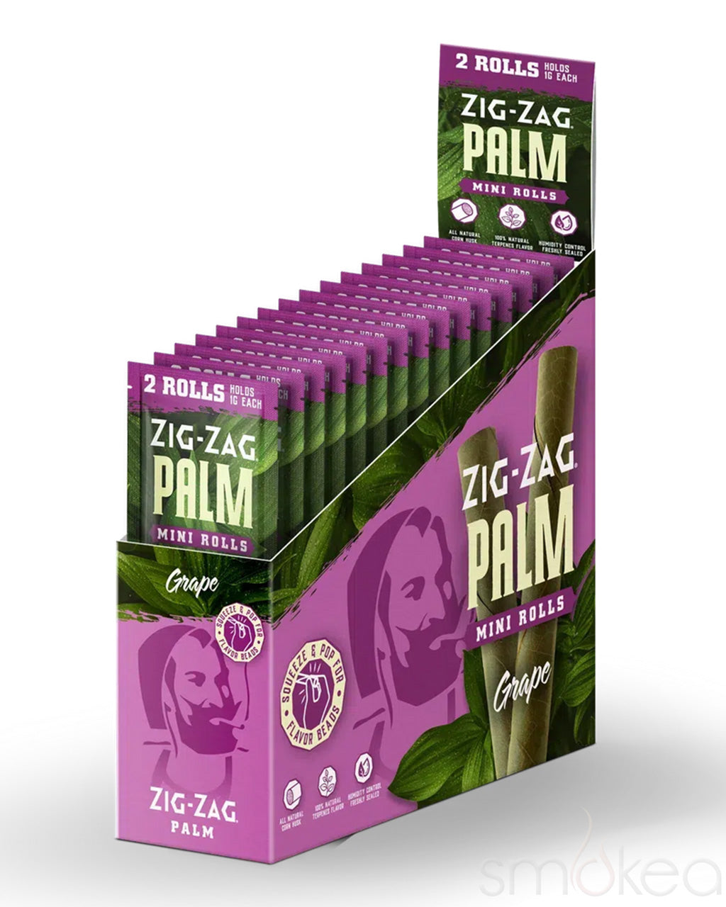 {"id":7545726926899,"title":"Zig Zag Mini Palm Rolls (2-Pack)","handle":"zig-zag-mini-palm-rolls-2-pack","description":"\u003cp\u003eDiscover a smooth and natural smoking experience with \u003cstrong\u003eZig-Zag Mini Palm Rolls\u003c\/strong\u003e. Crafted from high-quality palm leaves, these slow-burning wraps provide a clean, tobacco-free alternative. Inspired by the ancient Mayan tradition of rolling palm leaf cigars, these mini rolls are designed for those who appreciate a more natural way to enjoy their sessions.\u003c\/p\u003e\n\n\u003cp\u003eEach palm roll is free of harsh chemicals and additives, allowing for a pure and enjoyable burn. The compact size makes them ideal for on-the-go use, giving you a convenient option without sacrificing quality. This 2-pack offers just the right amount for a quick and satisfying smoke.\u003c\/p\u003e\n\n\u003ch3\u003eProduct Highlights:\u003c\/h3\u003e\n\u003cul\u003e\n\u003cli\u003ePremium Natural Palm Leaf Wraps\u003c\/li\u003e\n\u003cli\u003eSlow-Burning for a Smoother Experience\u003c\/li\u003e\n\u003cli\u003e100% Tobacco-Free and Chemical-Free\u003c\/li\u003e\n \u003cli\u003e100% Natural Terpenes Flavor\u003c\/li\u003e\n \u003cli\u003eHumidity Controlled Freshly Sealed\u003c\/li\u003e\n \u003cli\u003eAll Natural Corn Husk Tips\u003c\/li\u003e\n\u003cli\u003eConvenient Mini Size for Portability\u003c\/li\u003e\n\u003c\/ul\u003e\n\u003ch3\u003eProduct Highlights:\u003c\/h3\u003e\n\u003ctable\u003e\n\u003ctbody\u003e\n\u003ctr\u003e\n\u003ctd\u003eBrand\u003c\/td\u003e\n\u003ctd\u003e\u003ca href=\"\/collections\/zig-zag\" target=\"_blank\" title=\"Zig Zag Blunts and Rolling Accessories\" rel=\"noopener\"\u003eZig Zag\u003c\/a\u003e\u003c\/td\u003e\n\u003c\/tr\u003e\n\u003ctr\u003e\n\u003ctd\u003eMaterial\u003c\/td\u003e\n\u003ctd\u003ePalm Leaf\u003c\/td\u003e\n\u003c\/tr\u003e\n\u003ctr\u003e\n\u003ctd\u003eSize\u003c\/td\u003e\n\u003ctd\u003eMini\u003c\/td\u003e\n\u003c\/tr\u003e\n \u003ctr\u003e\n\u003ctd\u003eCapacity\u003c\/td\u003e\n\u003ctd\u003e1g\u003c\/td\u003e\n\u003c\/tr\u003e\n\u003ctr\u003e\n\u003ctd\u003eRolls\/Pack\u003c\/td\u003e\n\u003ctd\u003e2\u003c\/td\u003e\n\u003c\/tr\u003e\n \u003ctr\u003e\n\u003ctd\u003ePacks\/Display\u003c\/td\u003e\n\u003ctd\u003e15\u003c\/td\u003e\n\u003c\/tr\u003e\n\u003c\/tbody\u003e\n\u003c\/table\u003e\n\u003ciframe src=\"https:\/\/player.vimeo.com\/video\/1067036312\" width=\"640\" height=\"360\" frameborder=\"0\" allow=\"autoplay; fullscreen\" allowfullscreen=\"\"\u003e\u003c\/iframe\u003e","published_at":"2025-03-18T13:03:31-05:00","created_at":"2025-03-18T13:32:17-05:00","vendor":"Zig Zag","type":"Pre-Rolled","tags":["Brand_Zig Zag","Color_Green","Display","Material_Palm Leaf","New","Non-Dropship","Price_Under $10","Product Type_Pre-Rolled","Roll Your Own","Size_Mini","Vendor_National Tobacco","w50","wholesale"],"price":103,"price_min":103,"price_max":103,"available":true,"price_varies":false,"compare_at_price":null,"compare_at_price_min":0,"compare_at_price_max":0,"compare_at_price_varies":false,"variants":[{"id":43223892033587,"title":"Banana","option1":"Banana","option2":null,"option3":null,"sku":"ZZ-PM2BN","requires_shipping":true,"taxable":true,"featured_image":{"id":33224146714675,"product_id":7545726926899,"position":1,"created_at":"2025-03-18T13:34:48-05:00","updated_at":"2025-03-18T13:54:16-05:00","alt":null,"width":1024,"height":1280,"src":"\/\/smokeawholesale.com\/cdn\/shop\/files\/zzmini2naturalbox.jpg?v=1742324056","variant_ids":[43223892033587]},"available":true,"name":"Zig Zag Mini Palm Rolls (2-Pack) - Banana","public_title":"Banana","options":["Banana"],"price":103,"weight":10,"compare_at_price":null,"inventory_management":"shopify","barcode":"840439107440","featured_media":{"alt":null,"id":25068644663347,"position":1,"preview_image":{"aspect_ratio":0.8,"height":1280,"width":1024,"src":"\/\/smokeawholesale.com\/cdn\/shop\/files\/zzmini2naturalbox.jpg?v=1742324056"}},"requires_selling_plan":false,"selling_plan_allocations":[],"quantity_rule":{"min":1,"max":null,"increment":1}},{"id":43223892066355,"title":"Blueberry","option1":"Blueberry","option2":null,"option3":null,"sku":"ZZ-PM2BB","requires_shipping":true,"taxable":true,"featured_image":{"id":33224146780211,"product_id":7545726926899,"position":6,"created_at":"2025-03-18T13:34:48-05:00","updated_at":"2025-03-18T13:54:16-05:00","alt":null,"width":1024,"height":1280,"src":"\/\/smokeawholesale.com\/cdn\/shop\/files\/zzmini2boxbb.jpg?v=1742324056","variant_ids":[43223892066355]},"available":true,"name":"Zig Zag Mini Palm Rolls (2-Pack) - Blueberry","public_title":"Blueberry","options":["Blueberry"],"price":103,"weight":10,"compare_at_price":null,"inventory_management":"shopify","barcode":"840439107211","featured_media":{"alt":null,"id":25068644728883,"position":6,"preview_image":{"aspect_ratio":0.8,"height":1280,"width":1024,"src":"\/\/smokeawholesale.com\/cdn\/shop\/files\/zzmini2boxbb.jpg?v=1742324056"}},"requires_selling_plan":false,"selling_plan_allocations":[],"quantity_rule":{"min":1,"max":null,"increment":1}},{"id":43223892099123,"title":"Grape","option1":"Grape","option2":null,"option3":null,"sku":"ZZ-PM2GP","requires_shipping":true,"taxable":true,"featured_image":{"id":33224146747443,"product_id":7545726926899,"position":4,"created_at":"2025-03-18T13:34:48-05:00","updated_at":"2025-03-18T13:54:16-05:00","alt":null,"width":1024,"height":1280,"src":"\/\/smokeawholesale.com\/cdn\/shop\/files\/zzmini2grapebox.jpg?v=1742324056","variant_ids":[43223892099123]},"available":true,"name":"Zig Zag Mini Palm Rolls (2-Pack) - Grape","public_title":"Grape","options":["Grape"],"price":103,"weight":10,"compare_at_price":null,"inventory_management":"shopify","barcode":"840439107341","featured_media":{"alt":null,"id":25068644499507,"position":4,"preview_image":{"aspect_ratio":0.8,"height":1280,"width":1024,"src":"\/\/smokeawholesale.com\/cdn\/shop\/files\/zzmini2grapebox.jpg?v=1742324056"}},"requires_selling_plan":false,"selling_pla